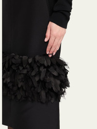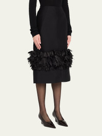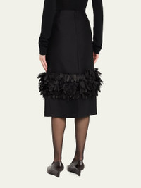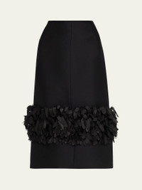 Toteme skirt is crafted from wool crepe accented with silk chiffon and satin petals embellished along the hem High waist Aline silhouette Hem falls below the knee Walking vent back Invisible back zip Wool/silk Dry clean Imported