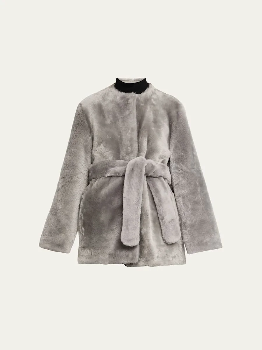 An ultra-cozy top layer, this coat by Toteme is crafted from plush dyed lamb shearling (Turkey) in a straight, streamlined silhouette Collarless neckline Long sleeves Removable self-tie belt Side slip pockets Relaxed fit Mid-length Shearling Imported Online Inquiries: BGS21_T7K96| Store Inquiries: #5173119