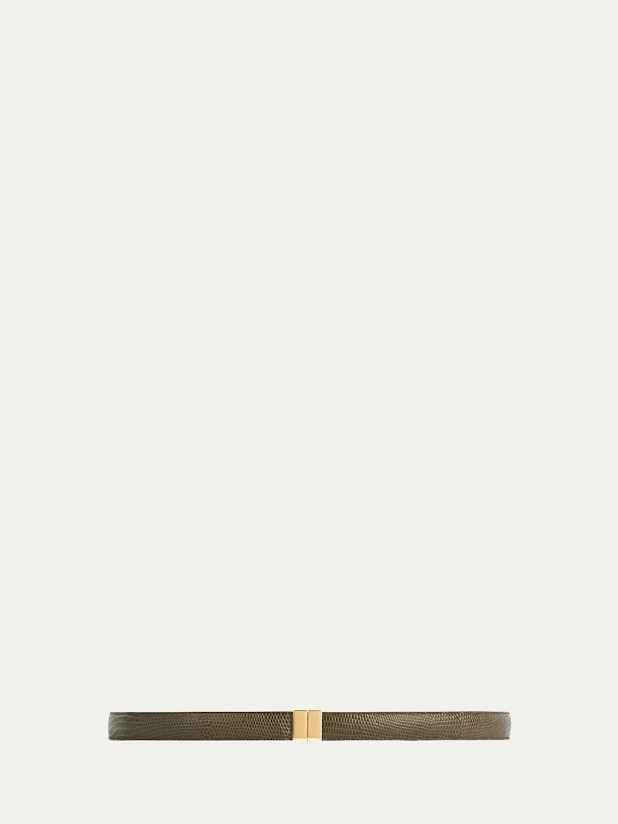 Toteme belt in lizard-embossed leather Approx. 0.6"W x 27"L Gold-tone metal slide clasp Leather Made in Italy Online Inquiries: BGS21_D5APL| Store Inquiries: #5046988