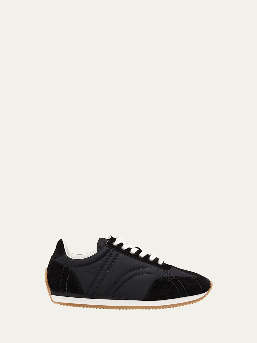 These lowtop sneakers by Toteme are designed for a sporty look and made from monogramquilted polyamide paired with suede trims and set on a comfortable foam midsole Flat heel Round toe Laceup vamp Rubber outsole Made in Portugal
