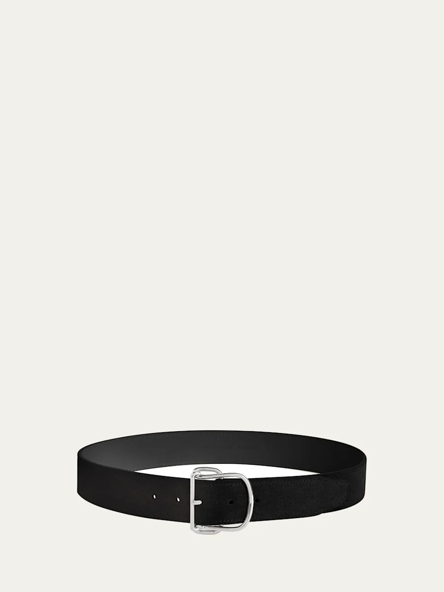 Toteme "Swirl" medium suede belt Approx. 1.6"W Buckle inspired by the intertwining shapes of the swirl jewelry pieces Cut to size Leather/suede Made in Italy Online Inquiries: BGS21_D56BC| Store Inquiries: #4989542