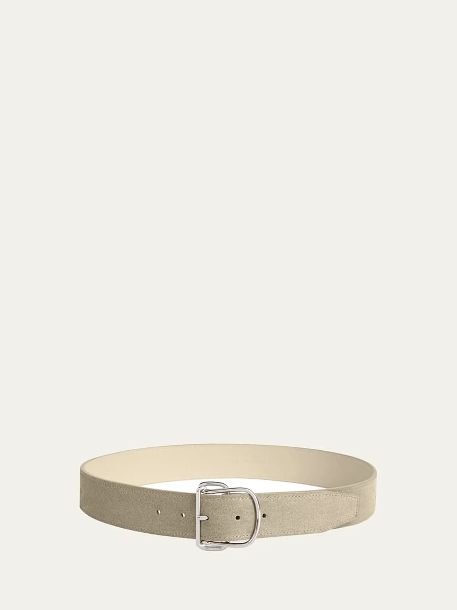 Toteme "Swirl" medium suede belt Approx. 1.6"W Buckle inspired by the intertwining shapes of the swirl jewelry pieces Cut to size Leather/suede Made in Italy Online Inquiries: BGS21_D56BC| Store Inquiries: #4989542