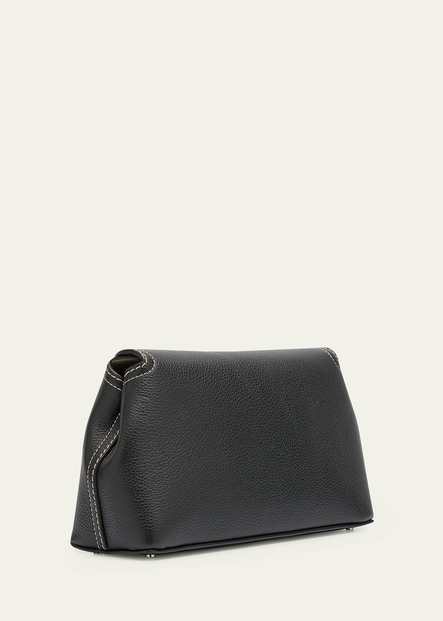 Toteme supple yet resilient pebble-grained leather clutch bag with contrast stitching Detachable crossbody strap Can be worn as a clutch or crossbody bag Curved flap top with T turn-lock closure Interior, one card slot Lining: Polyurethane Feet protect bottom of bag Approx. 10.2"H x 5.5"W x 3.5"D Made in Italy Online Inquiries: BGS21_V5XW1| Store Inquiries: #4585694