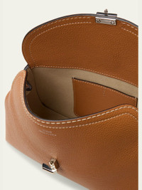 Toteme supple yet resilient pebblegrained leather clutch bag with contrast stitching Detachable crossbody strap Can be worn as a clutch or crossbody bag Curved flap top with T turnlock closure Interior, one card slot Lining: Polyurethane Feet protect bottom of bag Approx. 10.2"H x 5.5"W x 3.5"D Made in Italy