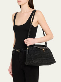 Everyday Toteme bag outlined with a curved top flap shaped to organically complement the hand and arm. It is crafted in Italy from woven leather finished with a gold-tone metal T-lock clasp and microsuede lining fitted with two slip pockets. Carry it from the top handle or the detachable and adjustable shoulder strap for different styling options. Toteme top handle bag in woven leather Top handle Detachable, adjustable shoulder strap Can be worn as a top handle or shoulder bag Flap top with T turn-lock closure Interior, two slip pockets Lining: Polyurethane Approx. 6.7"H x 13.7"W x 4.7"D Made in Italy Online Inquiries: BGS21_V6GVQ| Store Inquiries: #4987723