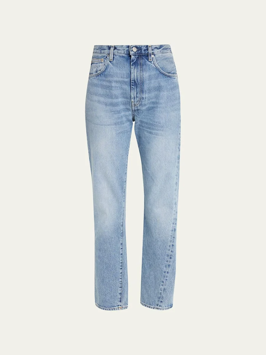 Toteme jeans featuring twisted seams High rise Five-pocket style Straight legs Full length Button/zip fly; belt loops Organic cotton Made in Italy Model is 5'10"/177cm. Online Inquiries: BGS21_B7LRA| Store Inquiries: #4384491