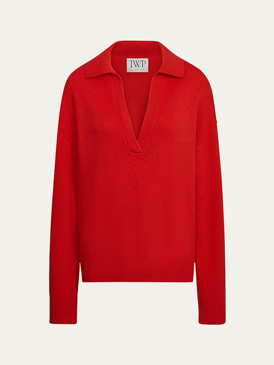 Crafted from luxe cashmere, the Boy sweater by TWP offers an oversized and cozy silhouette Approx. 25.5"L from shoulder to hem Collared V neckline Dropped shoulders Long sleeves Relaxed fit Hip length Pullover style Cashmere Dry clean Imported Online Inquiries: BGS21_T6VEJ| Store Inquiries: #5041733