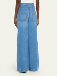 Crafted from light and breathable denim, the Mecox Beach jeans by TWP are finished with a textured hand and vintage-inspired wash High rise Four-pocket style Full length Wide legs Button/zip fly; belt loops Cotton Dry clean Made in USA from imported materials Online Inquiries: BGS21_T6VEQ| Store Inquiries: #5041972