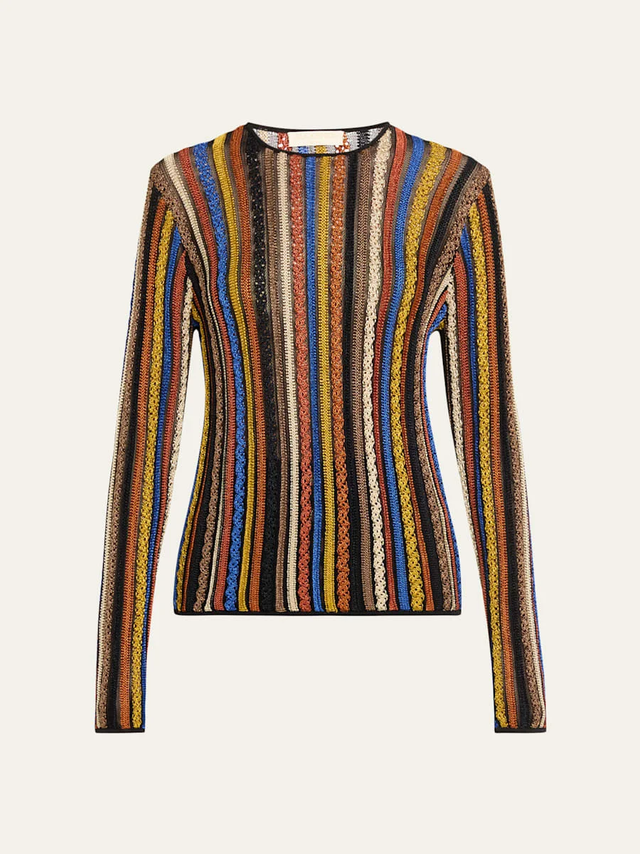 Ulla Johnson "Ardith" sheer top in lace knit Crew neckline Long sleeves Fitted Hem sits at the hip Pullover style Nylon/polyamide/viscose Imported Online Inquiries: BGS21_T6YS0| Store Inquiries: #5060429