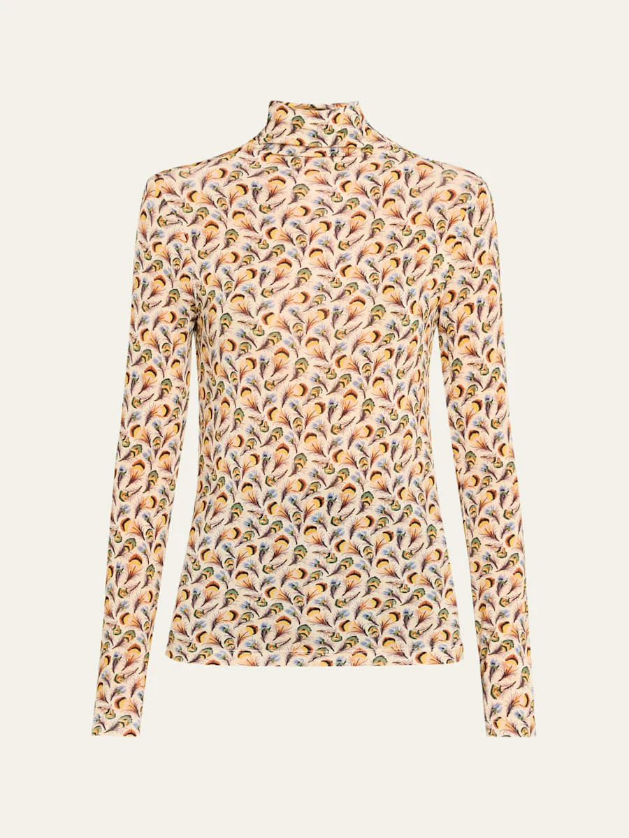 Ulla Johnson "Aurelia" soft jersey top decorated in a floral-print Turtleneck Long sleeves Easy fit Hem sits at the hip Pullover style Rayon/cellulose acetate/elastane Imported Online Inquiries: BGS21_T6YQZ| Store Inquiries: #5060418