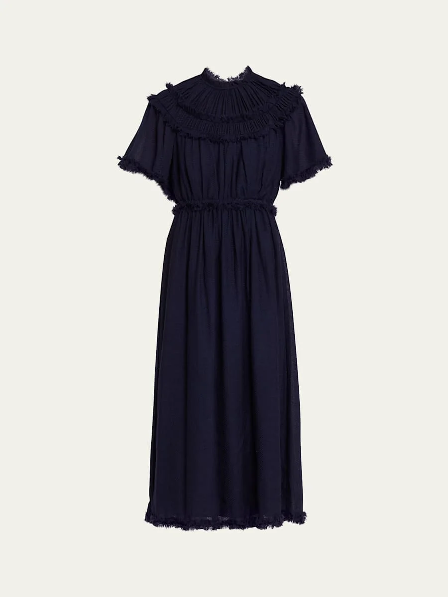 Ayan Gathered Yoked Short-Sleeve Midi Dress