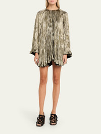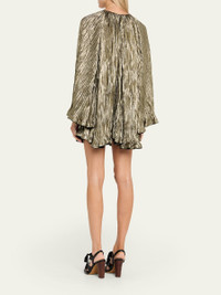 Claire Pleated Long-Sleeve Mini Dress
