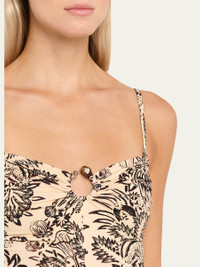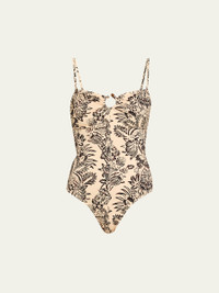 Ulla Johnson "Hydra Staples" bandeau onepiece swimsuit in a chic floral print features a central ring accent Strapless neckline Removable, adjustable straps Moderate seat coverage Nylon/polyamide/elastane Made in Portugal
