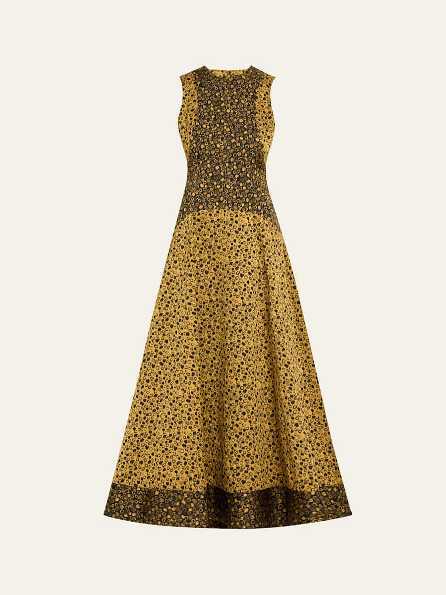 Ulla Johnson "Isadora" printed two-tone midi dress Crew neckline Sleeveless Drop-waist silhouette Hem falls below the knee Center back zip Polyester/silk/nylon/polyamide Dry clean Imported Online Inquiries: BGS21_T6UHB| Store Inquiries: #5021321