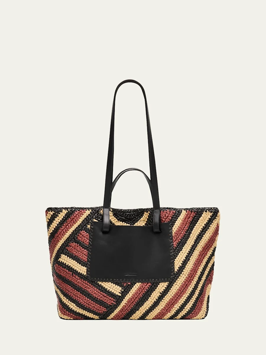Ulla Johnson "Lali" tote bag in striped raffia-like polypropylene Top handles Shoulder straps Open top with magnetic closure Exterior, one slip pocket Approx. 10.8"H x 19"W x 4.8"D Professional cleaning recommended Imported Online Inquiries: BGS21_V6FZQ| Store Inquiries: #4969543