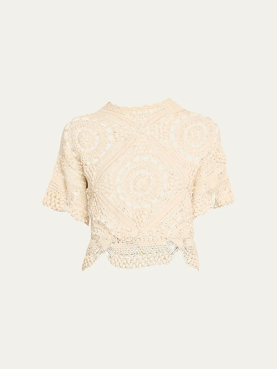Maddalena Short Sleeve Hand Crochet Top