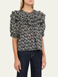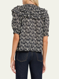 Mira Ruffle Puff-Sleeve Cotton Blouse