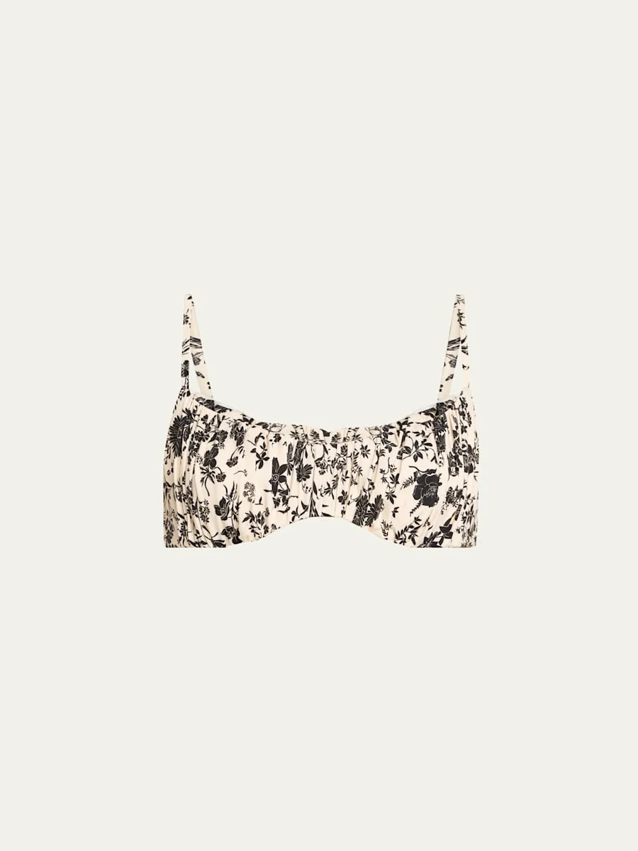Ulla Johnson "Naomi" floral-printed bikini top with ruched detailing Scoop neckline Adjustable straps Mid-back clasps Nylon/polyamide/elastane Made in Portugal Bottoms sold separately Online Inquiries: BGS21_T6NH1| Store Inquiries: #5021036
