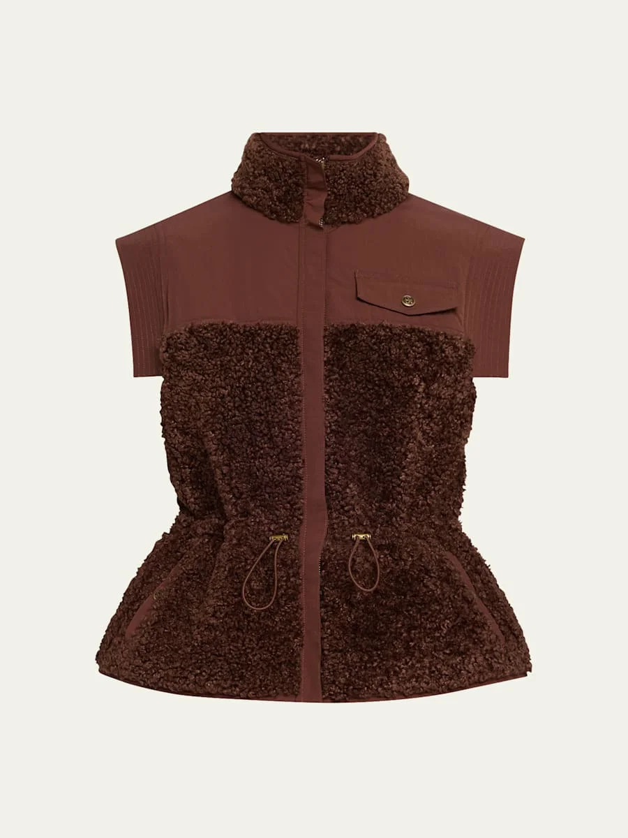 Ulla Johnson "Tariet" teddy fleece combo vest Stand collar Cap sleeves Chest pocket Adjustable drawstring waist Classic fit Hem sits at the hip Concealed zip-front Polyester Dry clean Imported Online Inquiries: BGS21_T6UGP| Store Inquiries: #5021346