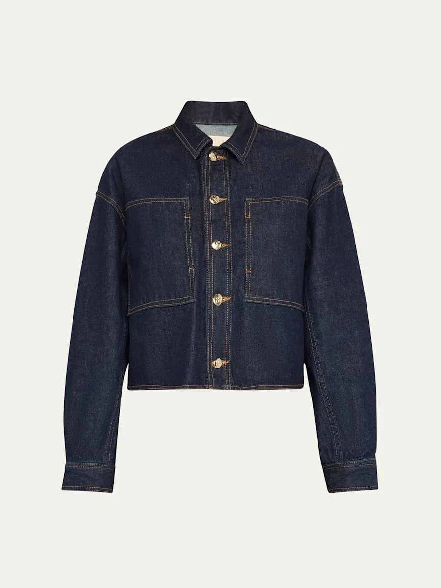 Ulla Johnson "The Bobbie" denim jacket featuring oversized patch pockets Point collar Dropped shoulders Long sleeves with button cuffs Relaxed fit Cropped length Button-front Cotton Machine wash cold Made in USA Model is 5'10"/177cm. Online Inquiries: BGS21_T68JD| Store Inquiries: #4929201