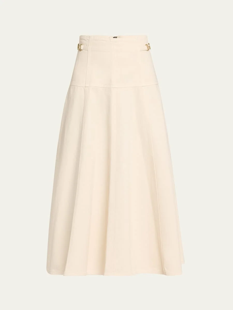 Ulla Johnson "The Brigette" paneled midi skirt High rise Circle-cut silhouette Hem falls below the knee Invisible side zip Cotton Machine wash cold Made in USA Model is 5'10"/177cm. Online Inquiries: BGS21_T68JE| Store Inquiries: #4929202