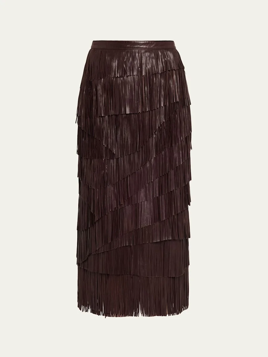 Therese Fringe Leather Midi Skirt
