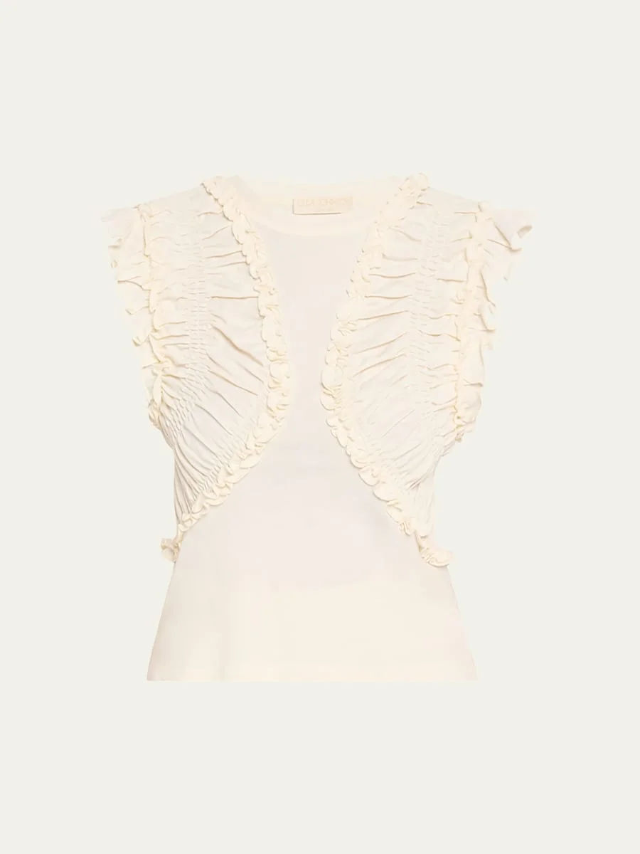 Ulla Johnson "Val" ruffled cotton top Crew neckline Sleeveless Easy fit Hem sits at the hip Pullover style Cotton Machine wash hot Imported Online Inquiries: BGS21_T6UH2| Store Inquiries: #5021337