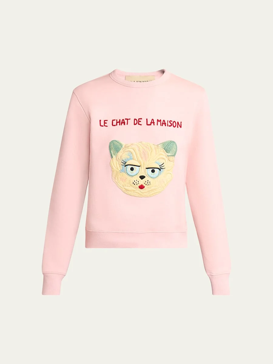 Cat-Embroidered Cotton Jersey Sweatshirt