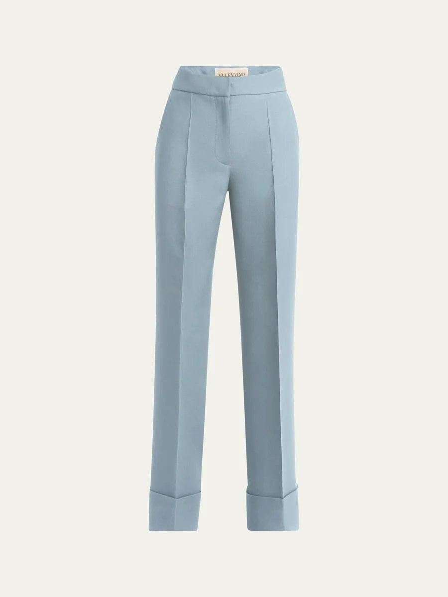 Valentino Garavani Crepe Couture trousers, expertly tailored for a sleek silhouette High rise Cropped at the ankle Straight legs Side slip pockets; back button pockets Front fastening with zip and hook and eye Virgin wool/silk Made in Italy Online Inquiries: BGS21_B9XTE| Store Inquiries: #4996670