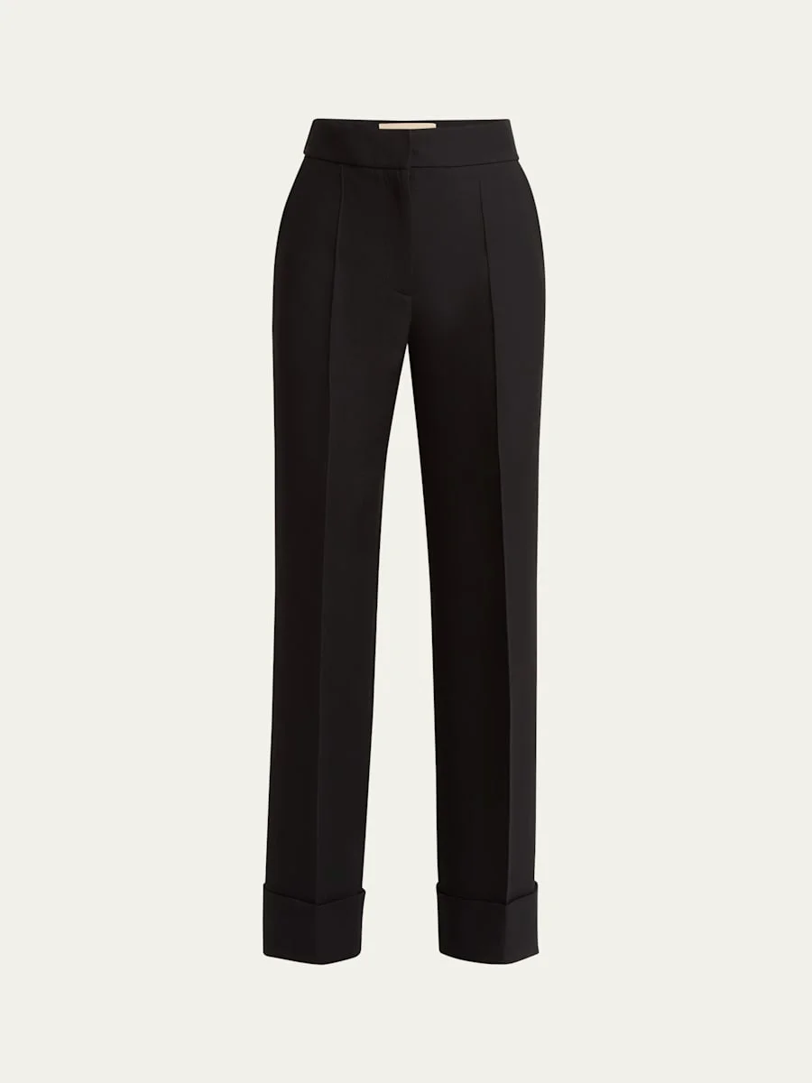 Valentino Garavani Crepe Couture trousers, expertly tailored for a sleek silhouette High rise Cropped at the ankle Straight legs Side slip pockets; back button pockets Front fastening with zip and hook and eye Virgin wool/silk Made in Italy Online Inquiries: BGS21_B9XTE| Store Inquiries: #4996670