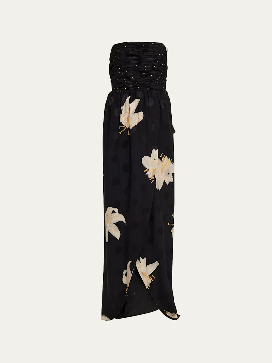 Crepe de Chine Jacquard Long Strapless Dress