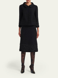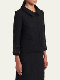 Crystal Embroidered Tweed Single-Breasted Top Coat