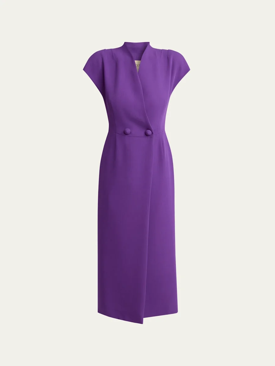 This midlength dress by Valentino Garavani is designed with a blazerstyle silhouette Stand collar; doublebreasted front Cap sleeves Hem falls below the knee Wrap silhouette Silk Lining: Viscose/elastane Made in Italy