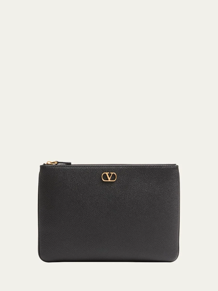 VLOGO SIGNATURE GRAINY CALFSKIN CLUTCH BAG