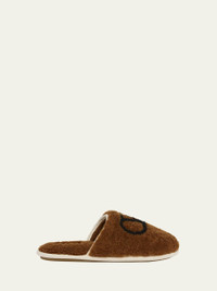 Valentino Garavani slippers in natural sheep shearling (Italy) Contains real fur Flat heel Round toe Polyester/wool lining VLogo Signature on the vamp Easy slide style Made in Italy