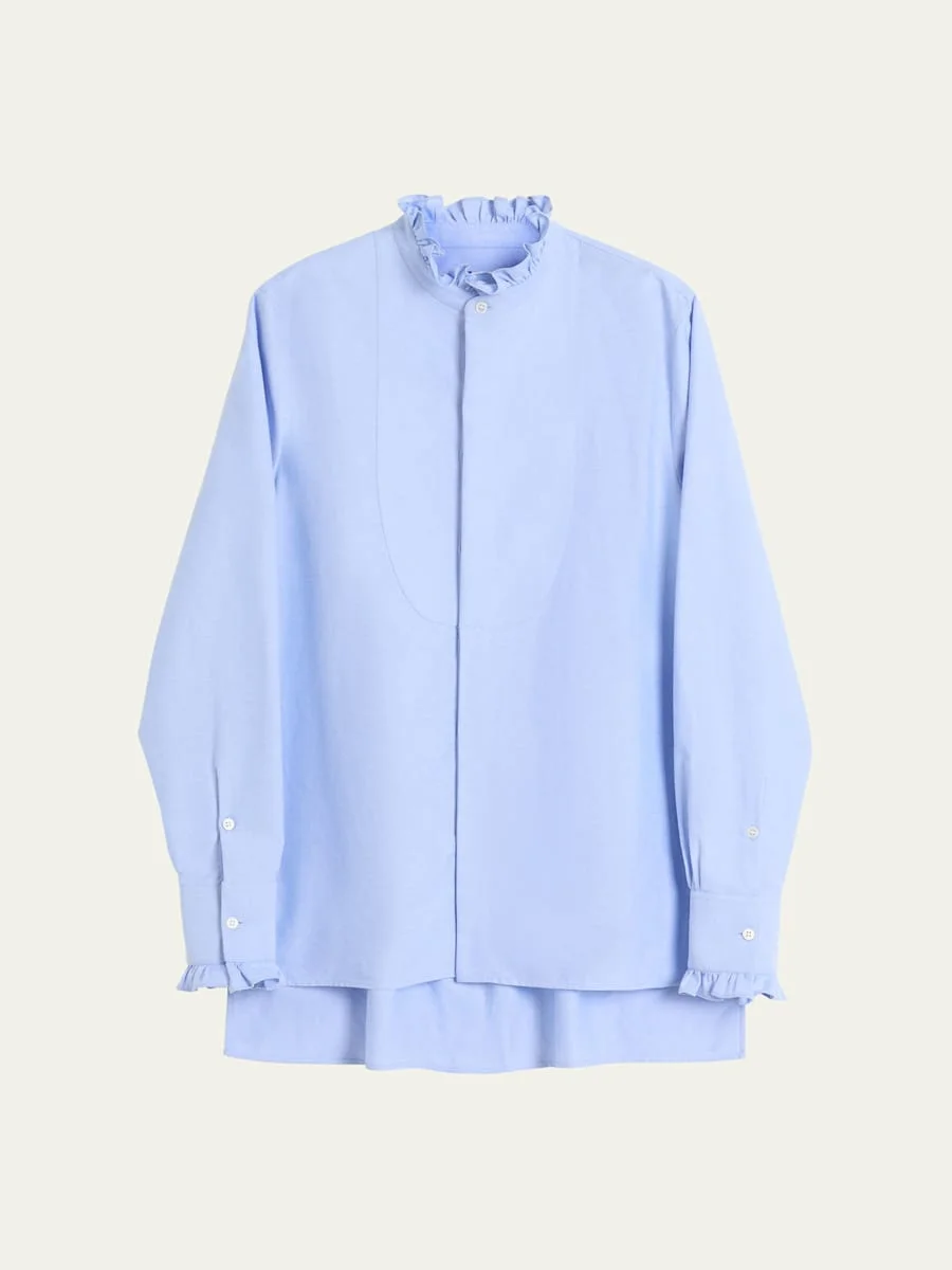 COTTON SHIRT WITH PLASTRON AND RUFFLES