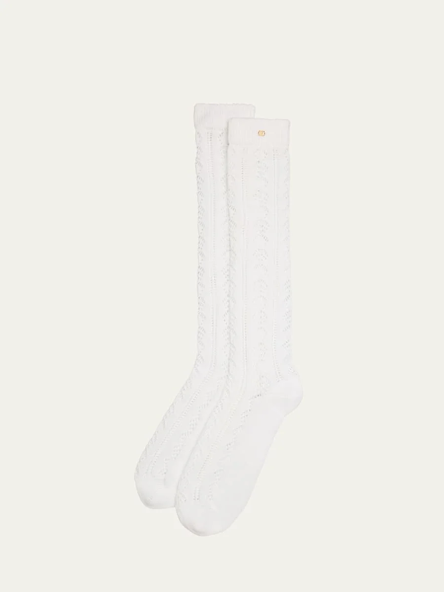 Valentino Garavani knit over-calf socks featuring gold-tone VLogo hardware Ribbed cuffs to prevent slipping Cotton/nylon/polyurethane Made in Italy Online Inquiries: BGS21_NCHR7| Store Inquiries: #4886978
