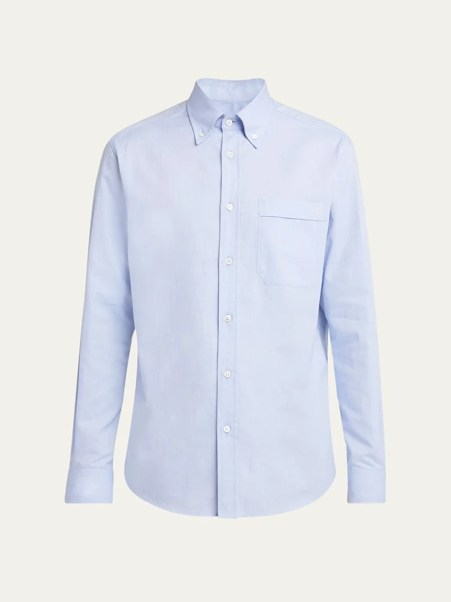 Valentino Garavani sport shirt cut from solid oxford cloth Buttoned collar and placket Chest patch pocket with embroidered VLogo Long sleeves Rounded barrel cuffs Yoked back shoulders Cotton Made in Italy Online Inquiries: BGS21_NCUWV| Store Inquiries: #4956463