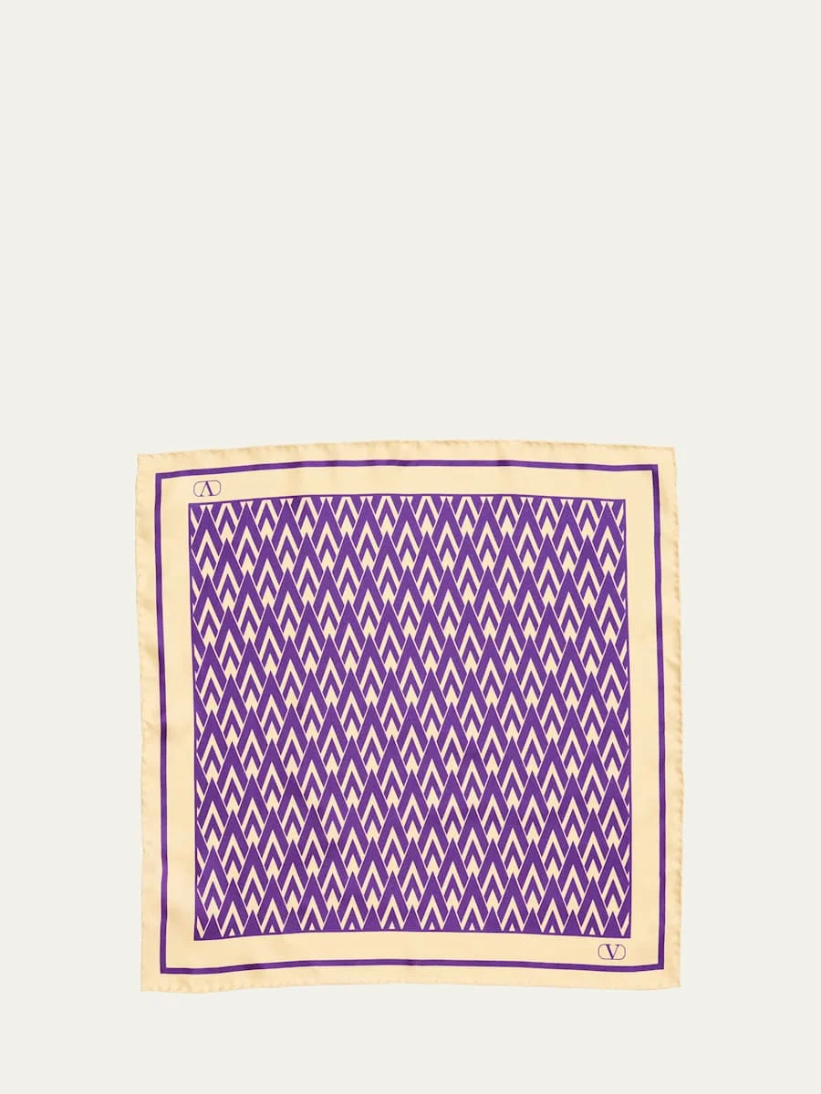 Valentino silk scarf printed in a monogram motif Contrast trim Can be styled multiple ways Approx. 17.7"L x 17.7"W Silk Made in Italy Online Inquiries: BGS21_D521D| Store Inquiries: #4894551