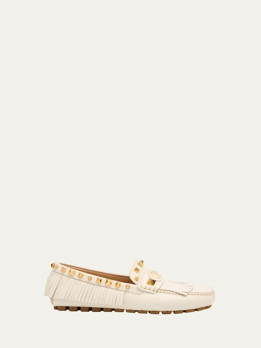 Rockstud Leather Fringe Driver Loafers