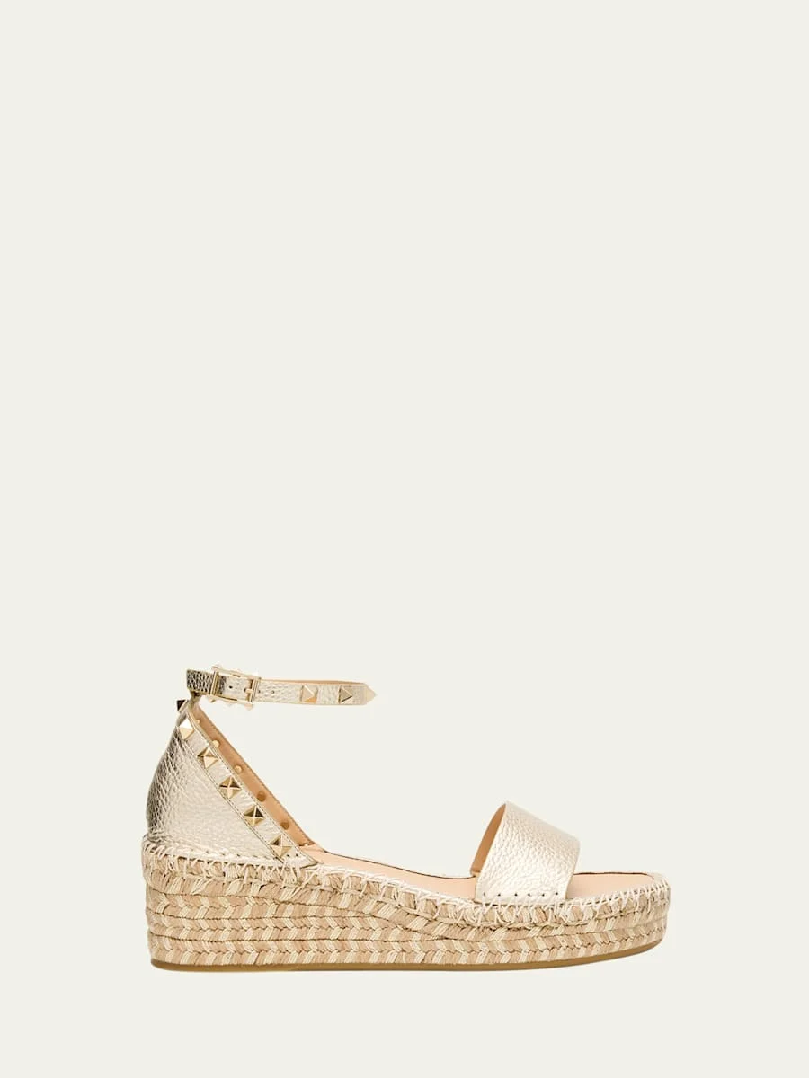 55mm Rockstud Metallic Leather Wedge Espadrille Sandals