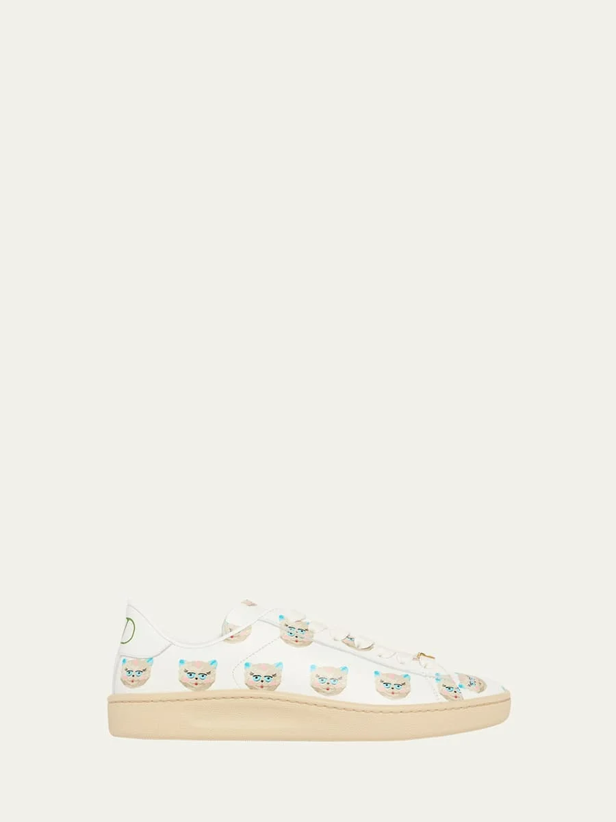 Royco VLogo Cat-Print Leather Sneakers