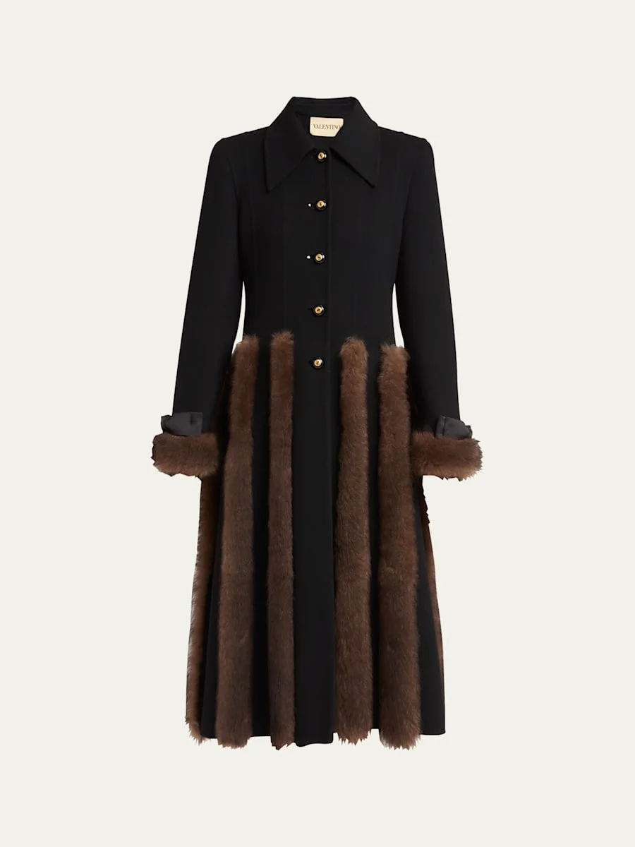 Sheep Shearling-Trim Single-Breasted Cashmere Coat