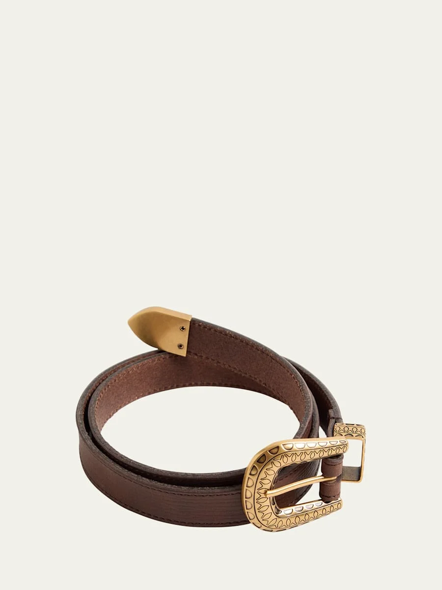 Valentino leather belt designed with engraved details and the classic V-logo Approx. 0.8"W Buckle closure Adjustable fit Tapered end Leather Made in Italy Online Inquiries: BGS21_D56QR| Store Inquiries: #4997231