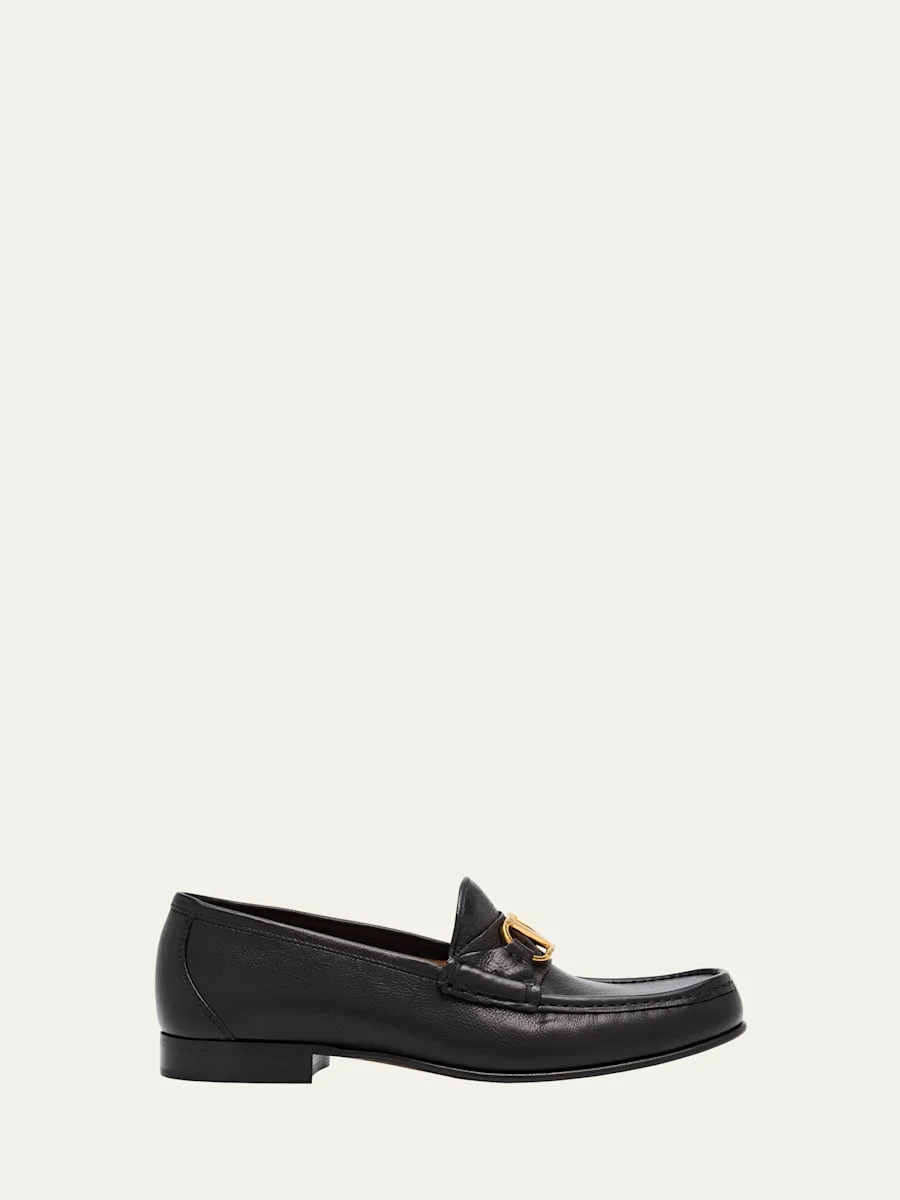 Valentino Garavani leather loafers with a golden V logo medallion 0.75 in / 20 mm flat heel Round moc toe Slip-on style Leather outsole Lining: Goat leather/leather Made in Italy Size Note: Valentino Garavani shoes run small. Please order a 1/2 size larger than you typically wear. Online Inquiries: BGS21_X6QPD| Store Inquiries: #4888894