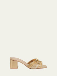 Valentino Garavani metallic leather mule sandals with golden V logo medallion 2.36 in / 60 mm block heel Open toe Wide band upper Slide style Leather outsole Lining: Leather Made in Italy