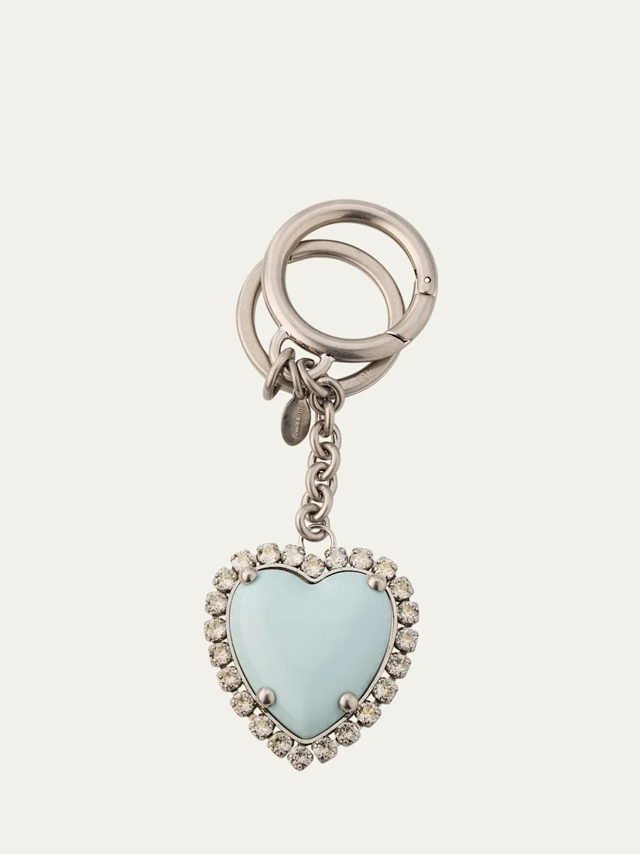 Valentino Garavani VLOGO signature embellished heart keyring in brass and enamel Approx. 5.3"H x 1.6"W Made in Italy