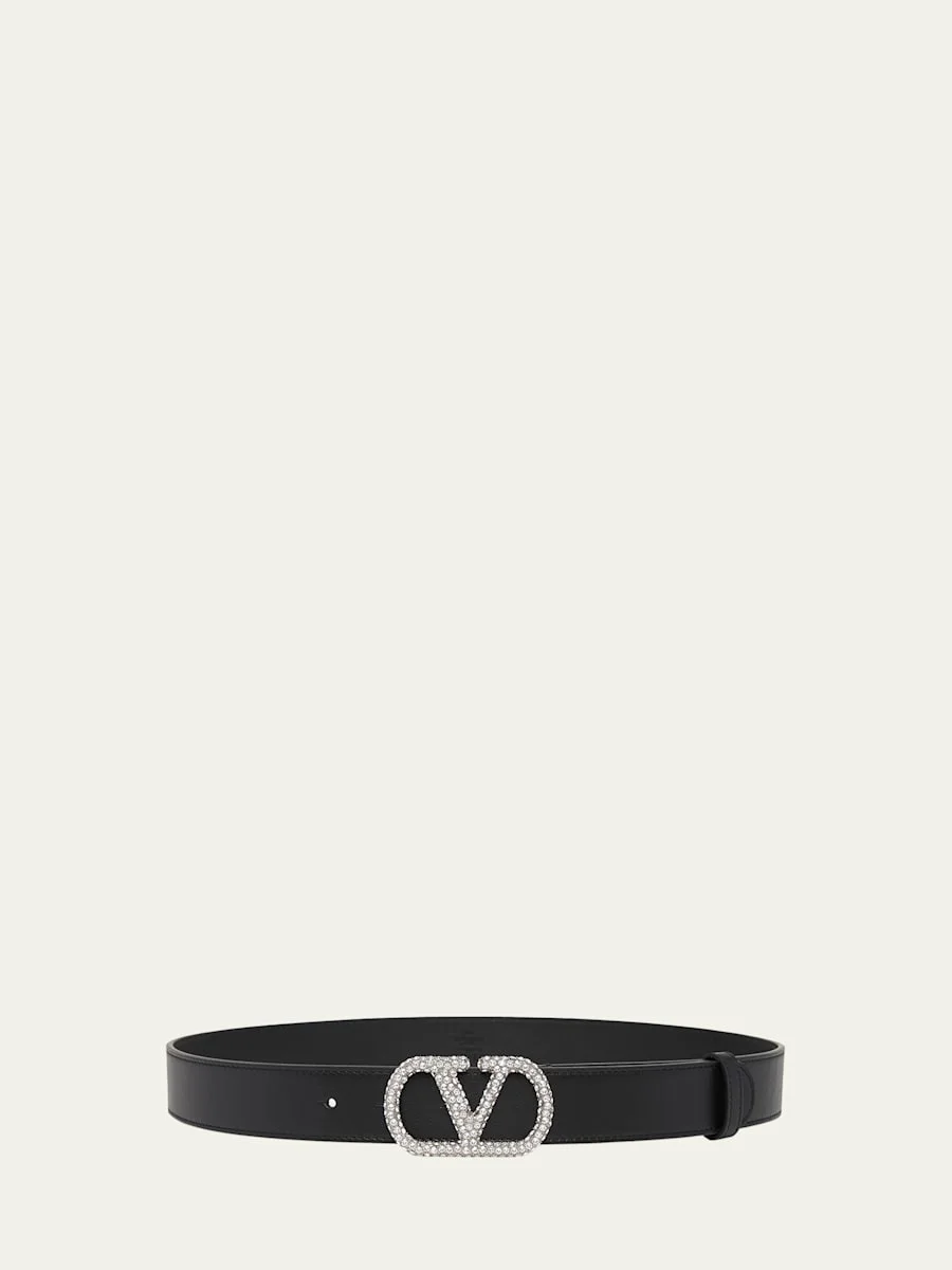 VLogo Signature Crystal-Embellished Leather Belt, 30mm