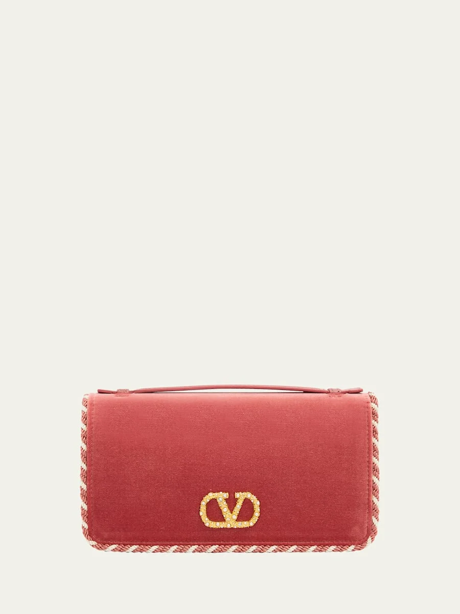 VLOGO SIGNATURE VELVET CHAIN WALLET WITH JEWEL LOGO
