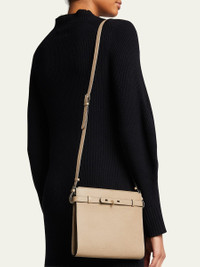Valextra textured leather shoulder strap. Removable, adjustable flat shoulder strap, 20.5" drop. Belted open top. Inside, contrast lining. 7.5"H x 8.5"W x 1.3"D. Weighs approx. 10 oz. "B-Tracollina" is made in Italy. Online Inquiries: BGS21_V3JUV| Store Inquiries: #2205020